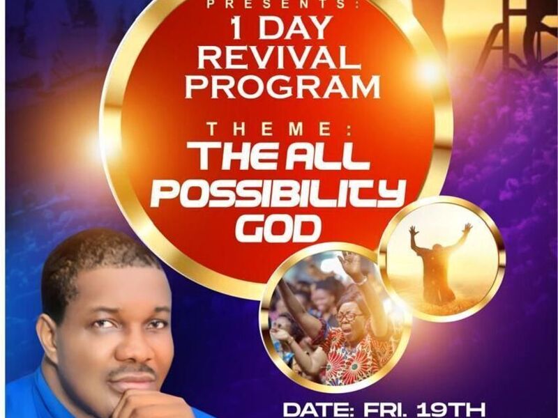 ACTION GOD OUTREACH PRAYER MINISTRY PRESENT ONE DAY REVIVAL PROGRAM. THEME THE ALL POSSIBILITY GOD.