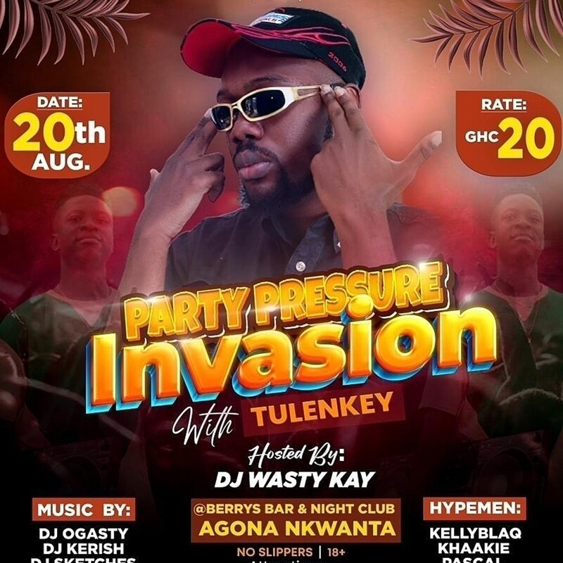 TEAM KAY in collaboration with Berry’s Bar and Night Club presents “Party pressure Invasion w/ TULENKEY”.