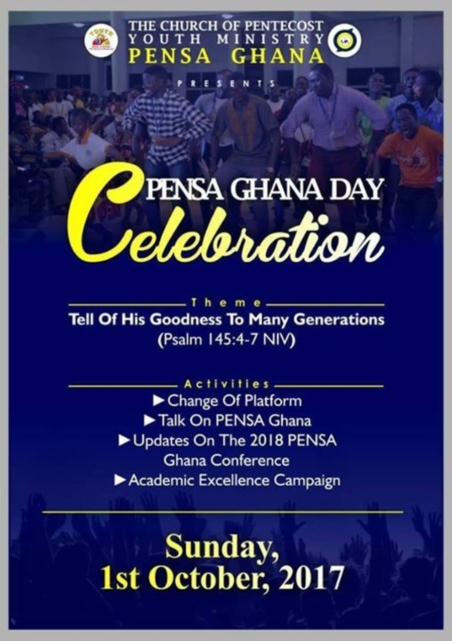 PENSA GHANA DAY is a day set aside to celebrate the existence of PENSA subsidiary body of the The Church of Pentecost. Be part of this celebration .