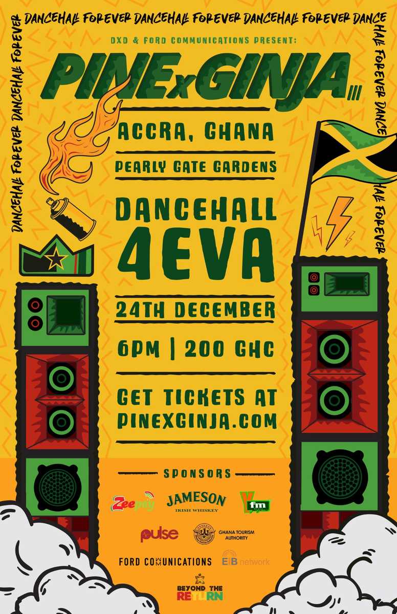 PineXGinja III (Pine and Ginger) is the wickedest mix of Ghanaian and Jamaican cultures, using music and performance to bring to you vibes for lovers of the vibrant aspect of Jamaican culture, in Accra, Ghana, and Jamaica. An official Beyond the Return event. #Dancehall4Eva #VibesAWeOnlyCurrency.