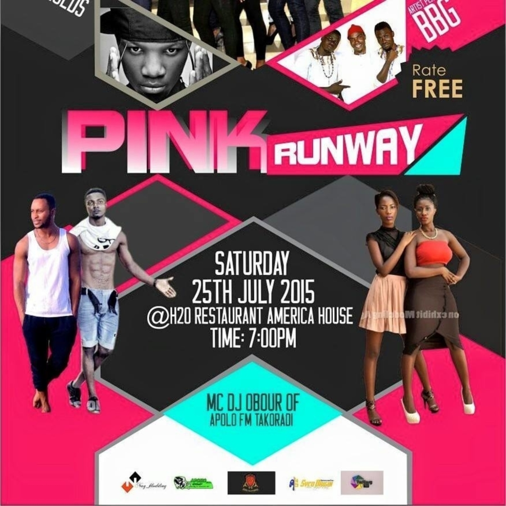 The pink runway is coming on live on 25th July and the red carpet starts at 6.30pm sharp. Please the venue is H20 America house East legon.
