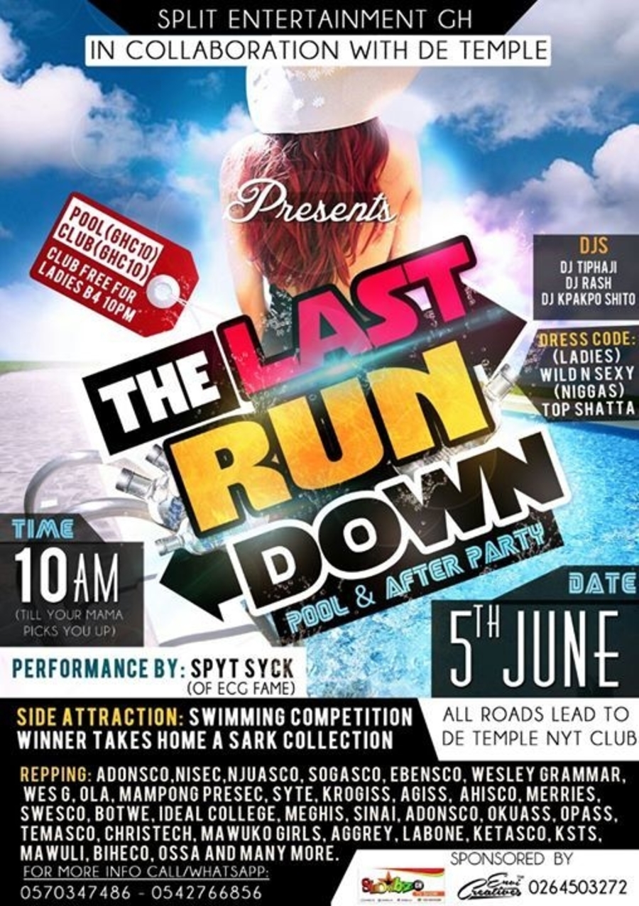 the biggest pool party ever to hit u. de temple, we back again wit a BANG. all roads leads to de temple on the 5th june 2015. MARK DE DATE!!!!!!! YA HEARD!!!!!!!!! (0244728185)