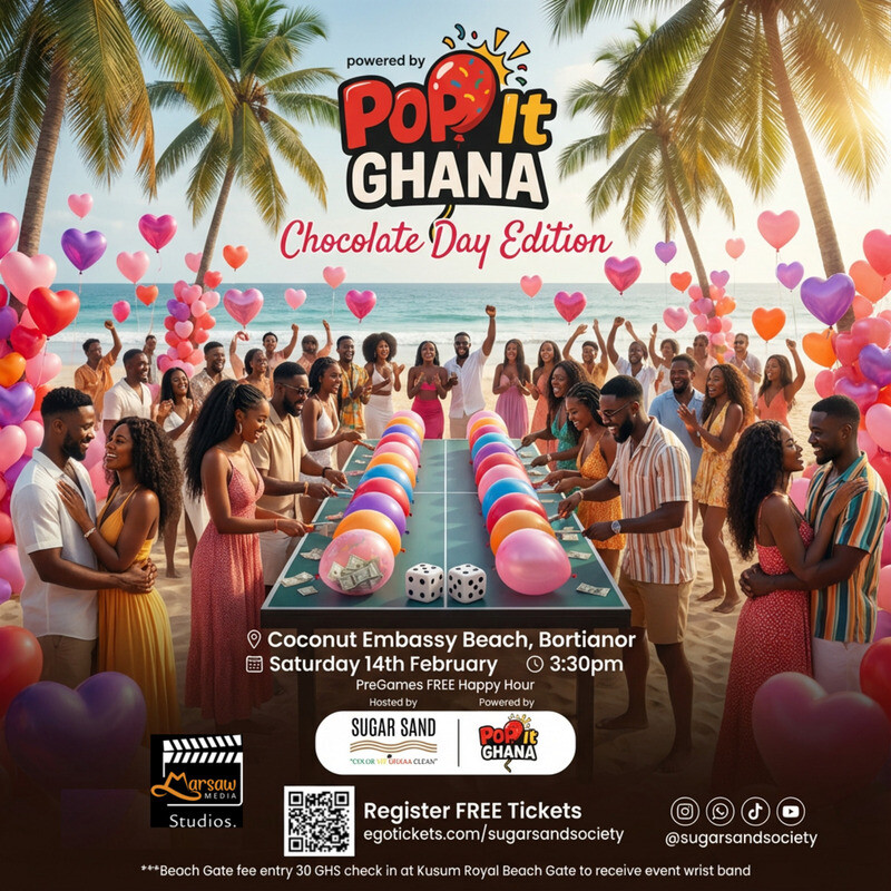 Join us for the ultimate pre-game fun at our FREE Happy Hour, powered by Pop It Ghana! πΉ Come early, mingle, and get ready to win amazing prizes on Chocolate Day π©π½ββ€οΈβπ¨πΎ