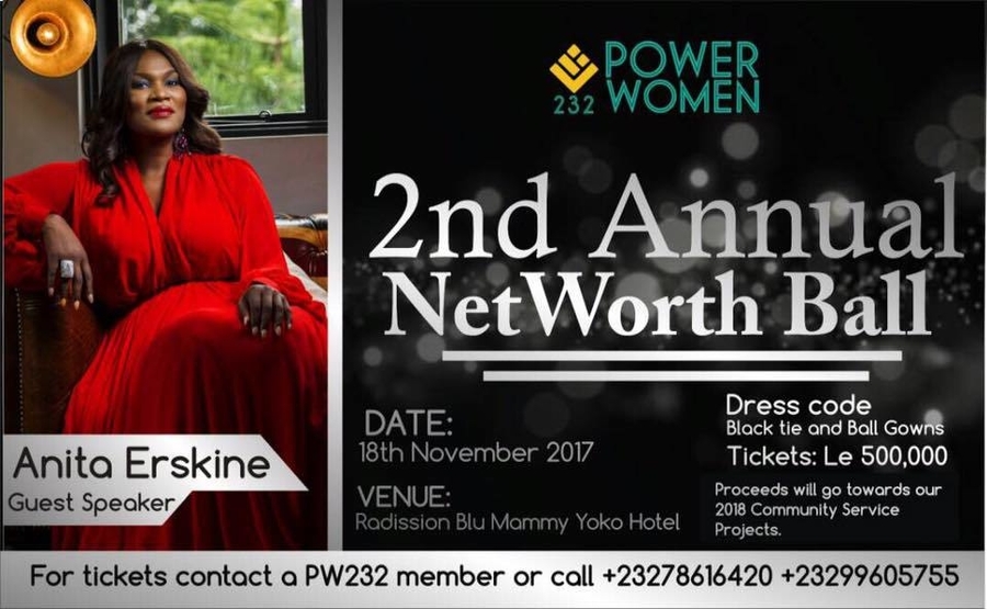 ON Saturday the 18th November 2017 in Freetown, Power Women 232 will host their 2nd Annual NetWorth Ball. This is an exclusive networking evening where decision-makers from business, government, arts and media will come together with young professionals and entrepreneurs to converse, create new relationships and support community development. The NetWorth Ball is the preeminent social and networking event of the year in Freetown. Proceeds from this year's event will go towards our 2018 community service projects.