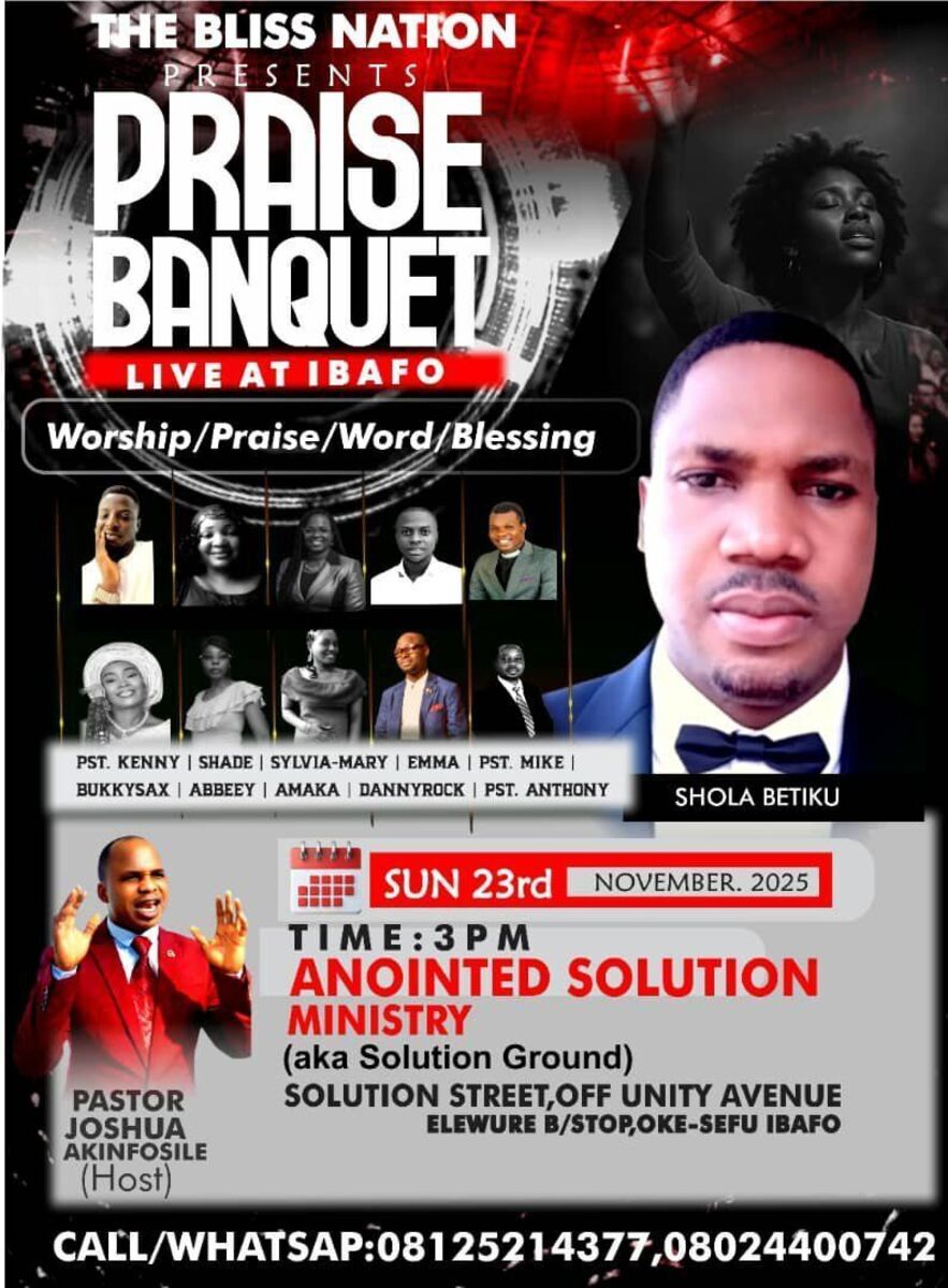 π Join us for an inspiring and joyous celebration at the Praise Banquet! This uplifting event is designed to bring together community members for a spiritual gathering filled with praise, worship, and fellowship. Expect powerful performances, heartfelt worship sessions, and an atmosphere charged with positivity and faith. Whether you're looking to reconnect with your spiritual roots or simply enjoy an evening of uplifting music and camaraderie, this event is perfect for everyone seeking to elevate their soul and celebrate faith in a vibrant setting. Donβt miss out on this memorable experience that promises to uplift and inspire! πβ¨