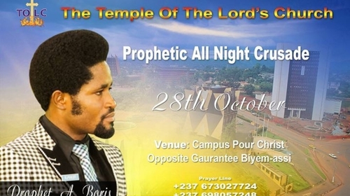 This will be a service of Deliverance, Prophecy, Counseling, Healing and Breakthrough MOST IMPORTANTLY it will be an ALL NIGHT SERVICE. OH MY GOD. GOD is Still saying something concerning YAOUNDE. All of you from Yaounde who emailed US at ( info@thetemple.tv ), Prophet A. Boris would be LIVE in Yaounde,