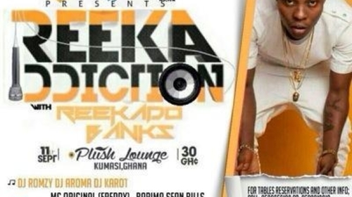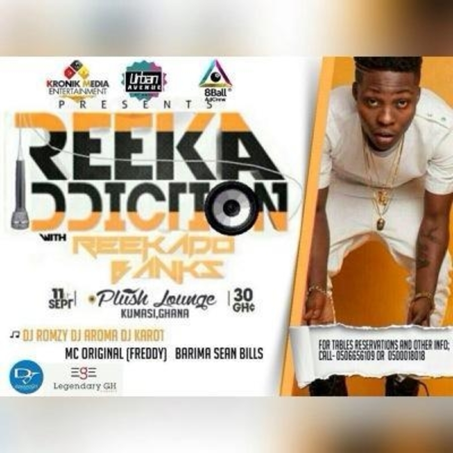 Grab your tickets and come have real good time @reekadoBanks on #Reekaddiction this Friday 11th September, 9pm inside Plush Lounge(KNUST Jubilee Mall)