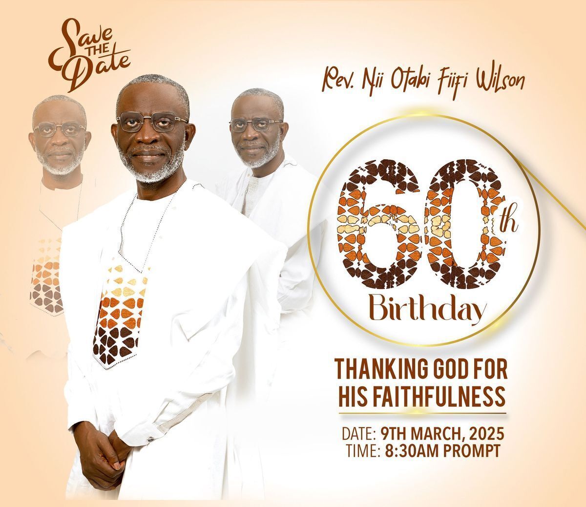 Join us to celebrate our senior pastor, Rev. Fiifi Otabi Wilson, on March 9th, as he turns 60 years old. This special occasion will also be our Pastors Appreciation Day! Save the date and be part of this momentous celebration! 🎉