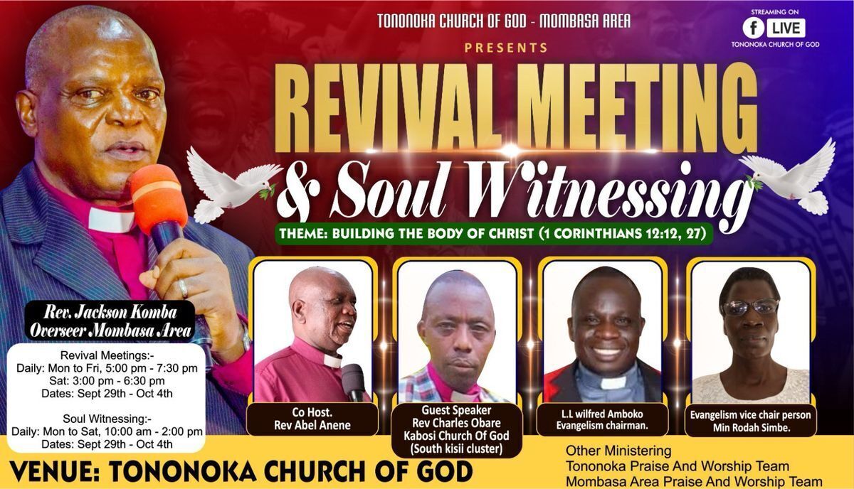 Join us for a powerful Revival Week filled with spiritual upliftment, divine ministrations, and community gathering. Starting from September 29th to October 5th, this week-long event promises days of prayer, worship, and impactful sermons led by Man of God Rev Charles from South Kisii. Whether you're seeking spiritual renewal, healing, or just a time to connect with fellow believers, this event is open to all. Come experience a week of divine grace, miracles, and transformation in a welcoming environment. 🙏✨