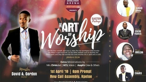John 4 vs. 23, 24: But the hour cometh, and now is, when the true worshippers shall worship the Father in spirit and in truth: for the Father seeketh such to worship him. God is a Spirit: and they that worship him must worship him in spirit and in truth. Worship is Heart-Work not Hard-Work. It's more than the music, lyrics, and expressions we make during a moment of song ministration. It's stretches beyond to a lifestyle of service to God. Shachah Arena International once again brings to you all An Easter Package- Worship Night dubbed "The Art of Worship" as Great ministers of God are preparing themselves both spiritually and physically to be a great blessing to us. This is our first program for 2018 but there would be more coming up. If you are in Kpetoe, around Kpetoe, near Volta region, out of Volta Region and even in Accra you can be part of this great event. Come and be delivered, healed, and get a breakthrough this coming Easter sunday as we worship and God will give you a testimony. Stay Blessed.