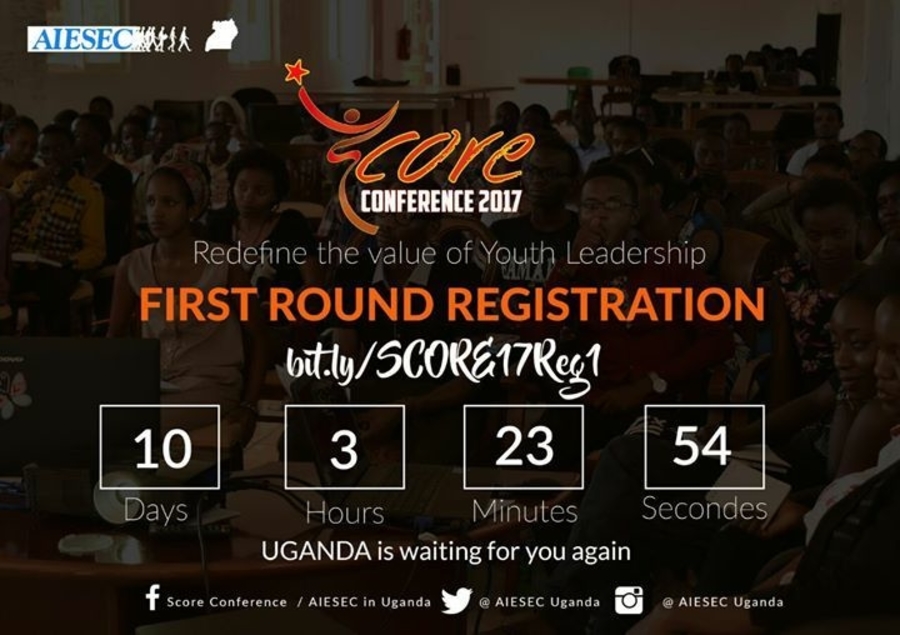 Score Conference is AIESEC in Uganda's Leadership Development Seminar that is organized annually to equip AIESEC members and other young people with key skills and knowledge to lead the entity and the organization