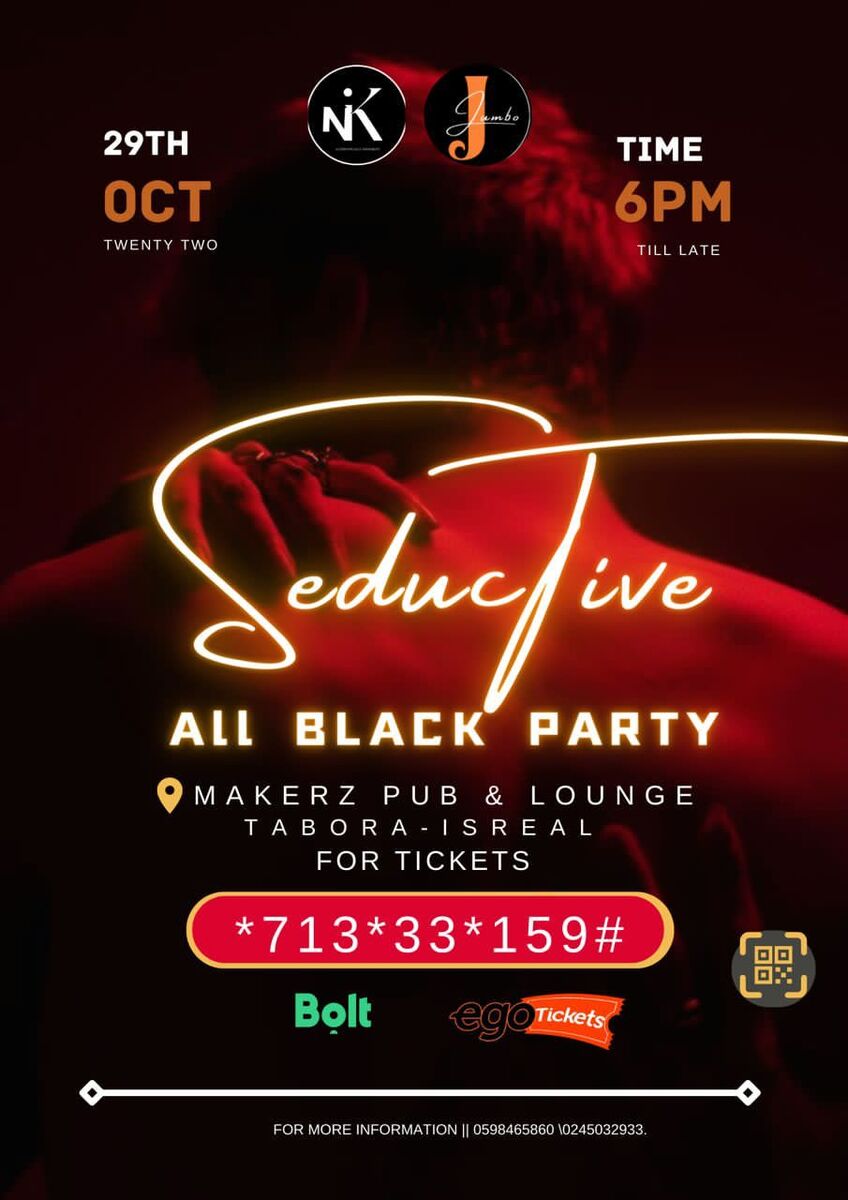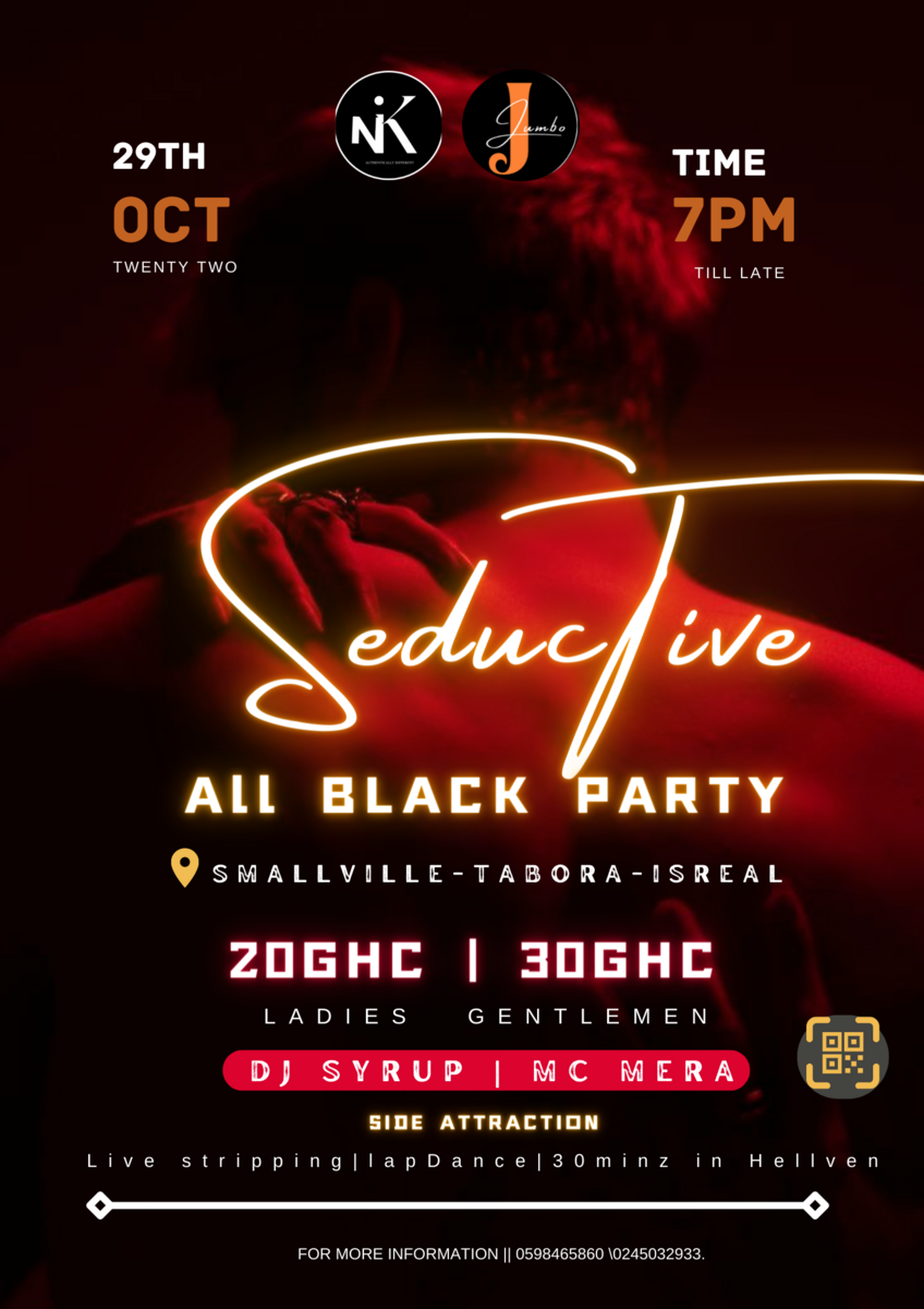 Seductive all black party to celebrate greatest achievements of all young people and aging, The party will help to influence native people in our community and in the world