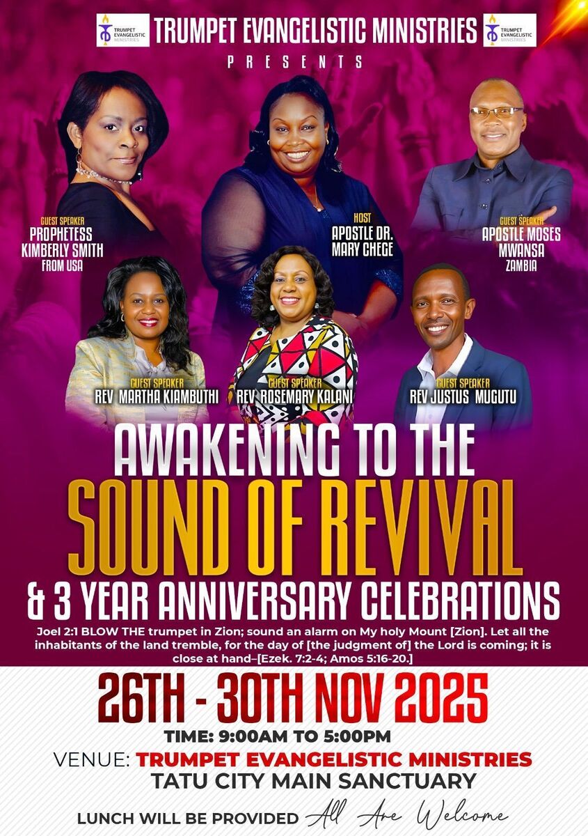 Join us at Trumpet Evangelistic Ministries as we celebrate 3 years of God's faithfulness! Experience a powerful move of God with inspiring worship, prophetic messages, and an atmosphere charged with spiritual revival. This event promises to ignite your faith and renew your passion for the Lord. Don't miss out on this divine encounterโeveryone is welcome! ๐
