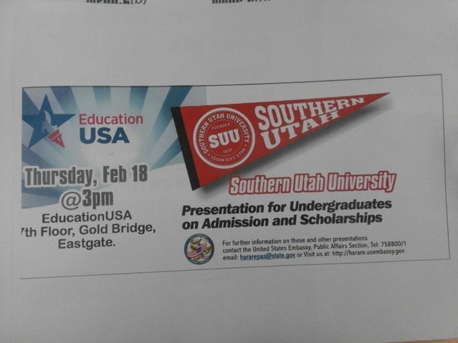 International Admissions Recruiter from Southern Utah University will present on scholarships offered at his school as well information pertaining to admissions