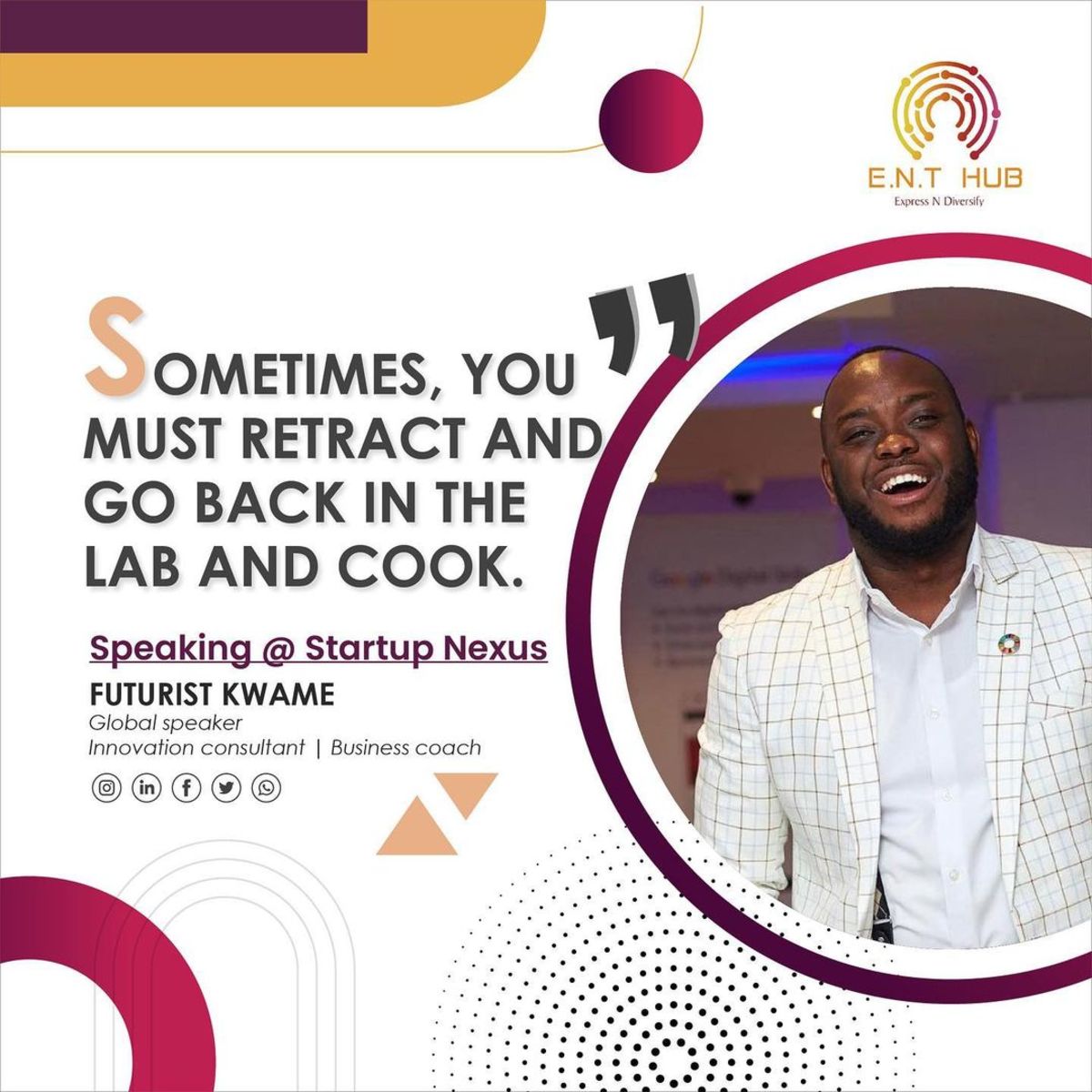COME NETWORK WITH POTENTIAL CLIENTS, FELLOW ENTREPRENUEURS AS WELL AS INTERACT WITH RESOURCE PERSONNELS WHO WOULD BE SPEAKING ON THEIR SUCCESS STORIES IN ENTREPRENEURSHIP.