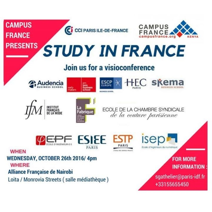 Join a graduate school in France! For more information take part in our video-conference at the Alliance Française de Nairobi - Artistic and Cultural Events on the 26th of October at 4 pm!
