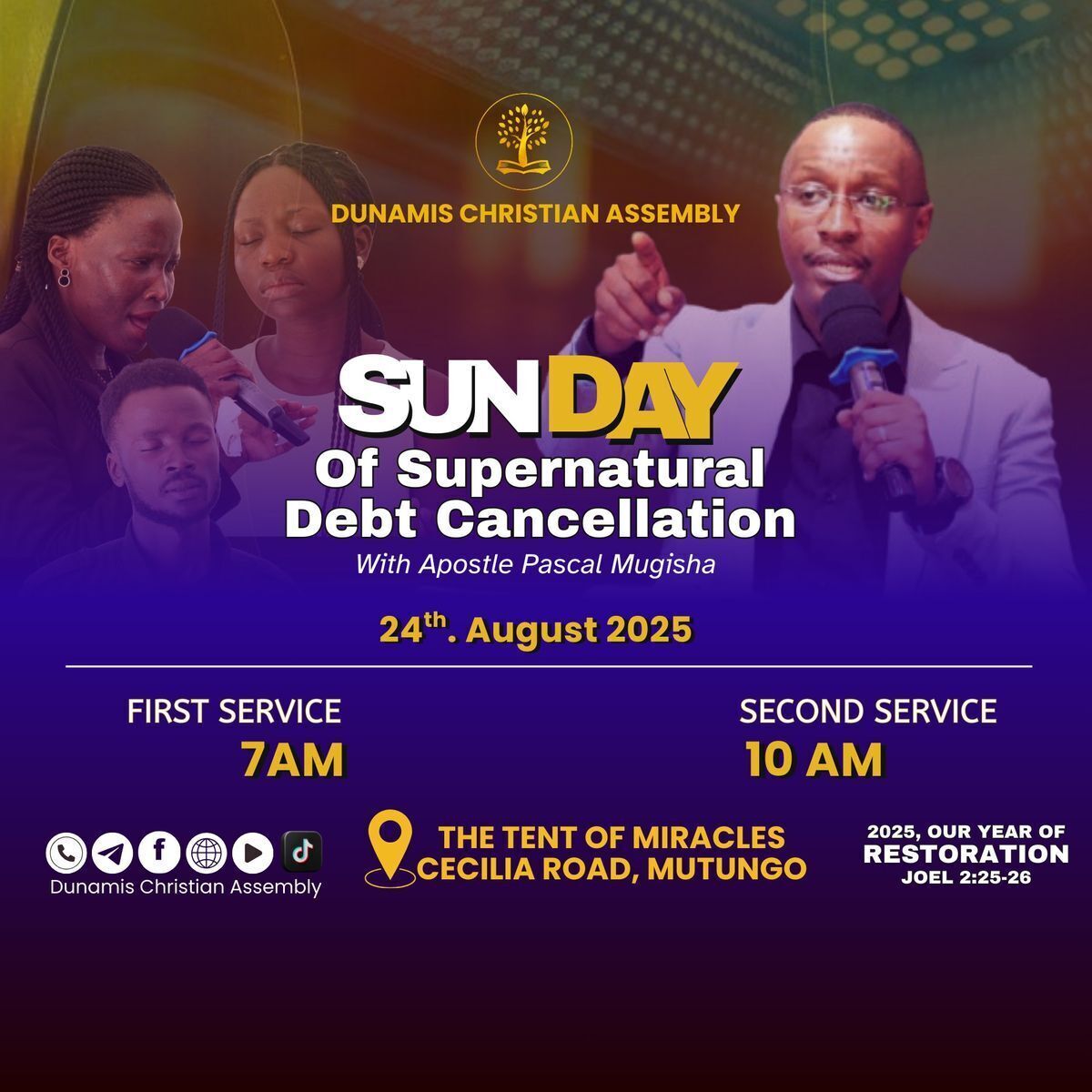 Join us for a powerful Sunday dedicated to supernatural debt cancellation! Experience spiritual breakthrough and liberation from unexplainable financial burdens. This event features inspiring messages, prayer sessions, and a community of believers coming together to seek divine intervention. Don’t miss this opportunity to receive God’s grace and favor over your finances. 🙏✨