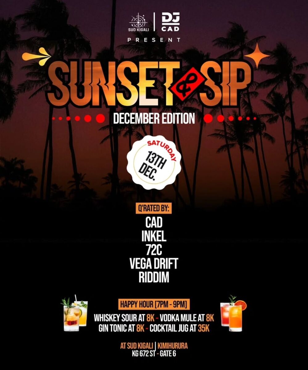 Get ready for the most vibrant December sunset experience in Kigali! Sud Kigali and DJ Cad proudly present Sunset & Sip – December Edition, a chilled yet electrifying evening crafted for music lovers, cocktail enthusiasts, and anyone craving good vibes under a palm-lit sky.