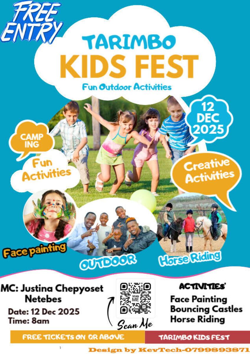 Get ready for a fun-filled day for the whole family! Join us at Kenegut Primary School Grounds on 12th December 2025 from 8:00 AM for the exciting Tarimbo Kids Festival β a day packed with laughter, games, and unforgettable moments!