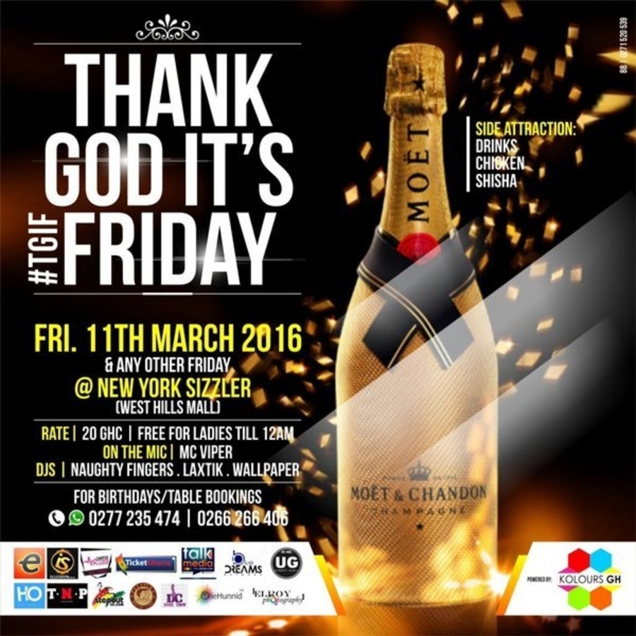 Thank God It's Friday brought to you by Kolours GH on Friday 11th March,2016 and every other Friday that follows.