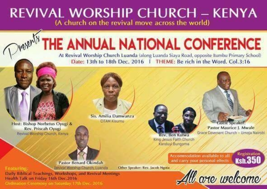 Annual National Conference Col 3: 16 Be rich in the word. Come experience a renewal, a revival as we grow rich in the word of God. The ministers are ready. Are you?