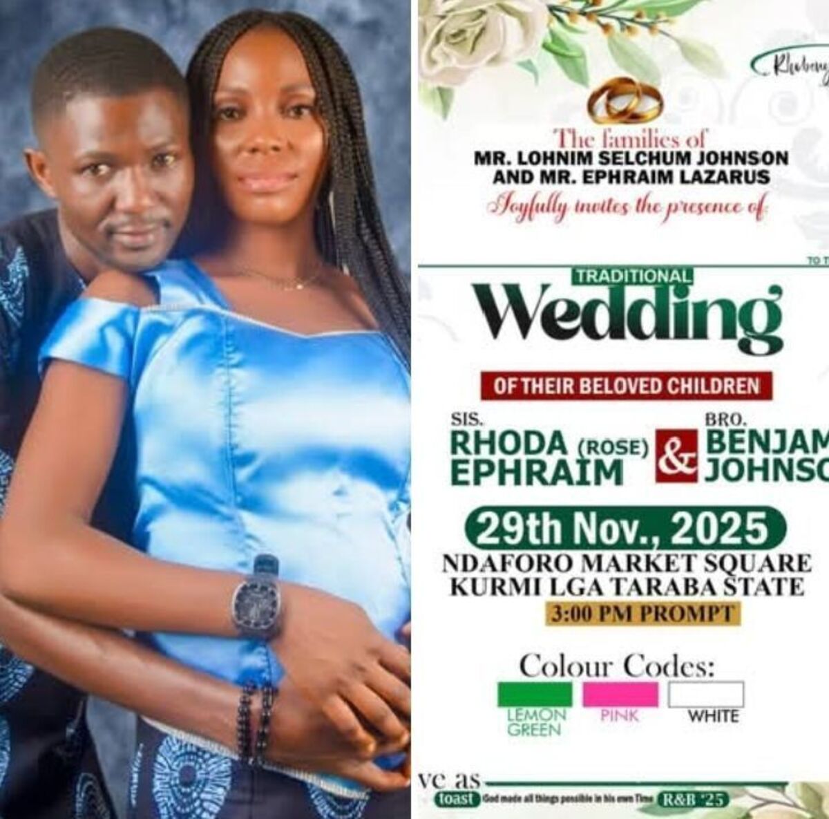 π Celebrate love and tradition! Join us for the beautiful Traditional Marriage Ceremony of Bro. Benjamin and Sis. Rhonda. This event marks a joyous union rooted in cultural heritage, filled with vibrant rituals, heartfelt prayers, and festive celebrations. Experience the warmth of community, the richness of tradition, and the beginning of a new chapter for the lovely couple. Whether you're a family member, friend, or well-wisher, this occasion promises memorable moments, cultural displays, and an atmosphere of pure happiness! ππ₯