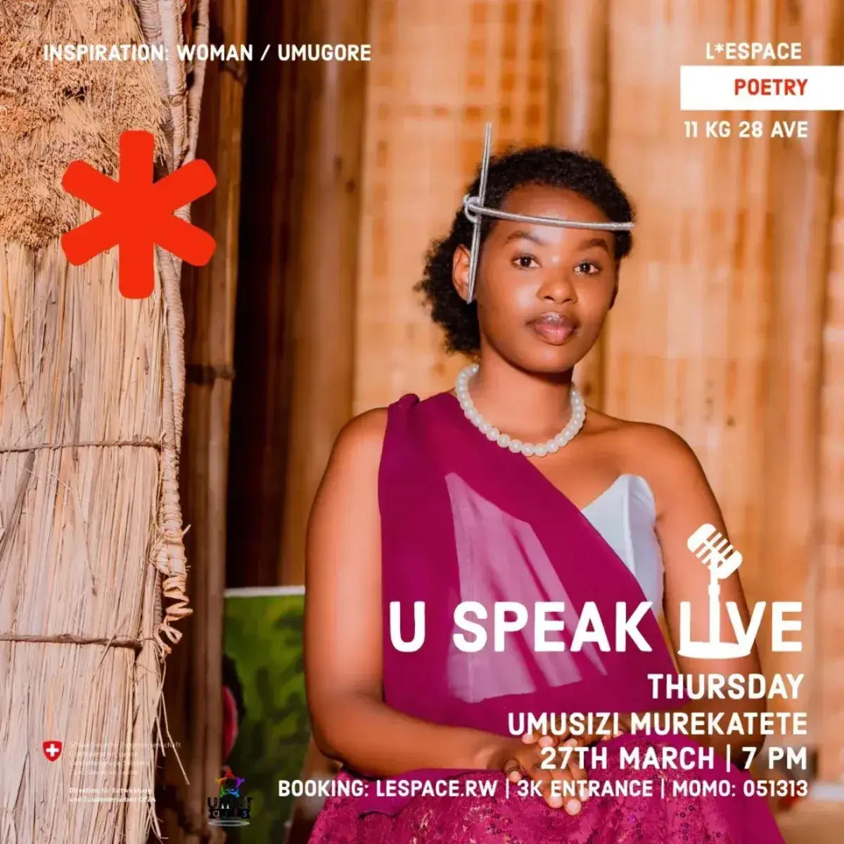 ✨ It's been a minute! In this month of celebrating women, we are thrilled to invite you to this special U SPEAK LIVE with Umusizi Murekatete, a talented poet and performer. Join us for a night filled with poetic ecstasy alongside a rich lineup of Rwandan poets!