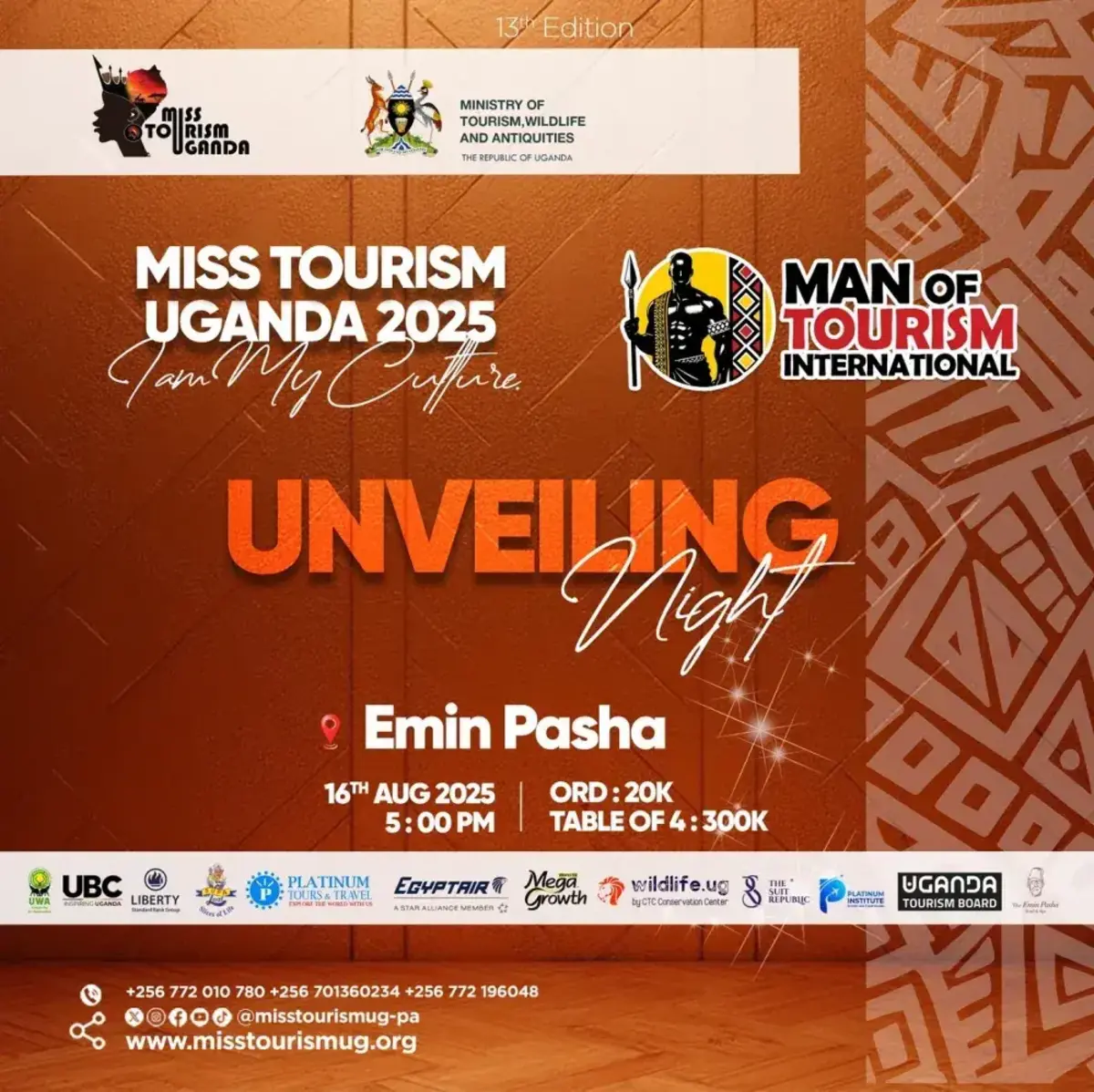 ๐ Join us for an glamorous celebration at the Unveiling Night of Miss Tourism Uganda 2025 and Man of Tourism International! This spectacular event promises an evening filled with elegance, cultural pride, and entertainment as Ugandaโs top tourism ambassadors are unveiled. Set against the beautiful backdrop of The Emin Pasha Hotel & Spa, the night will feature stunning fashion displays, inspiring speeches, and a celebration of Ugandaโs rich heritage under the theme โI Am My Cultureโ. Don't miss out on a memorable night of glamour, culture, and national pride! ๐โจ
