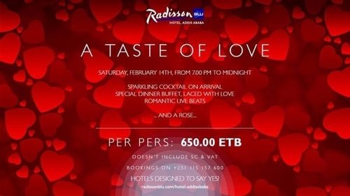 To spend an unforgettable holiday with the one you love come and celebrate Valentine's day at Radisson Blu Hotel Addis Ababa. Saturday, February 14th-from7PM- Midnight. Happy Memories!!!