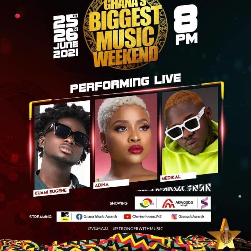 Also Streaming live on MTVBase and Ghana Music Awards Pages.