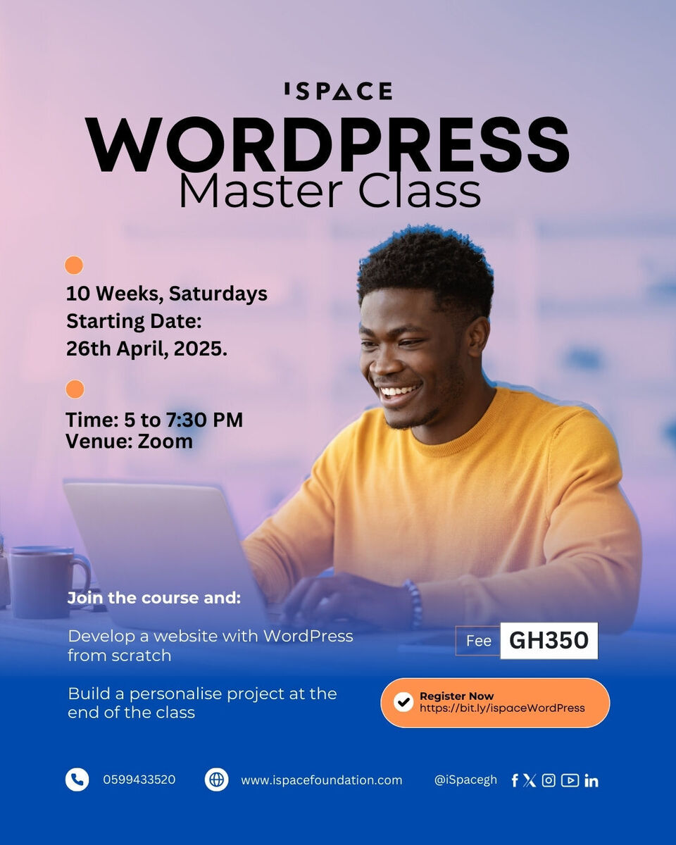 This is a Virtual session to help you design websites with WordPress from novice to intermediate level.