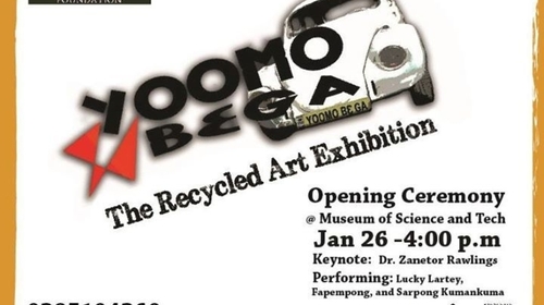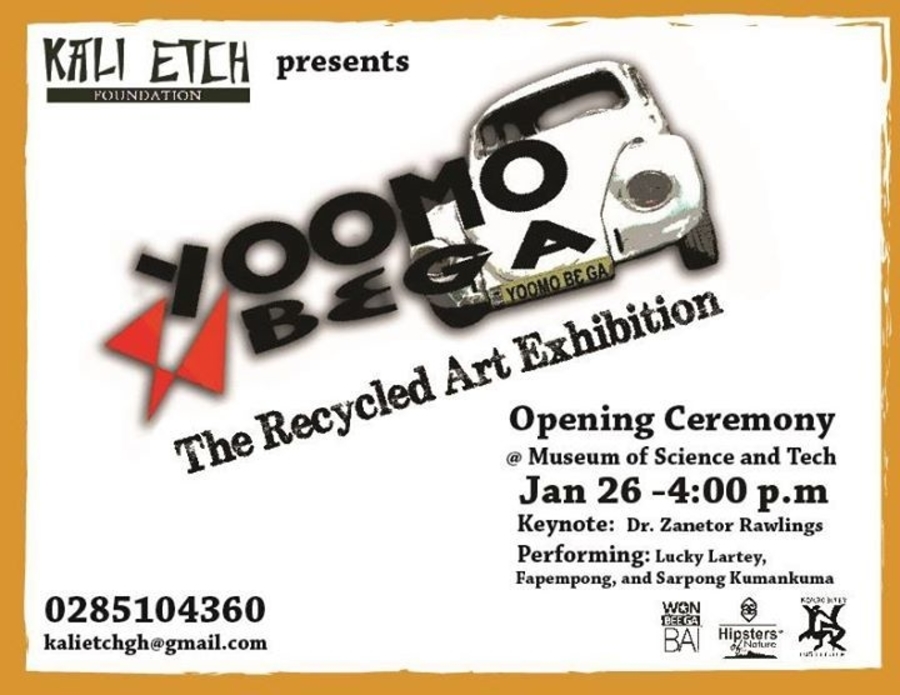 This Recycled Art Exhibition forms part of the Yoomo Bε Ga Environmental Awareness Project which basically presents to the general public, the benefits of appropriate alternative methods of handling wastes. The exhibition opens at 4pm on January26th and runs till the 24th of February. Activities for the Opening ceremony include a Keynote address to be delivered by Dr. Zanetor Rawlings, and performances by Lucky Lartey and his Unik Afro Dance Group, and poets, Fapempong and Sarpong Kumankuma. Yoomo Bε Ga: The Recycled Art Exhibition features the works of nine seasoned Ghanaian artists, who seeks to address pressing social issues through their art. They include Ed-Franklin Gavua, Nana Anoff, Tei Huagie, Matilda and Yaw of M.Y Extreme Dcor, Abigail Asare Bediako, Jonathan Amartey, Rufai Zakari and Solomon Adjirako. Rolling alongside the artworks will be different series of documentaries about environmental issues in Ghana.It will also be interactive sessions such as Meet the Artist, workshops and poetry night. This exhibition is supported by Won Bεε Ga, Hipsters of Nature and Kokrobitey Institute. We hope to see you there