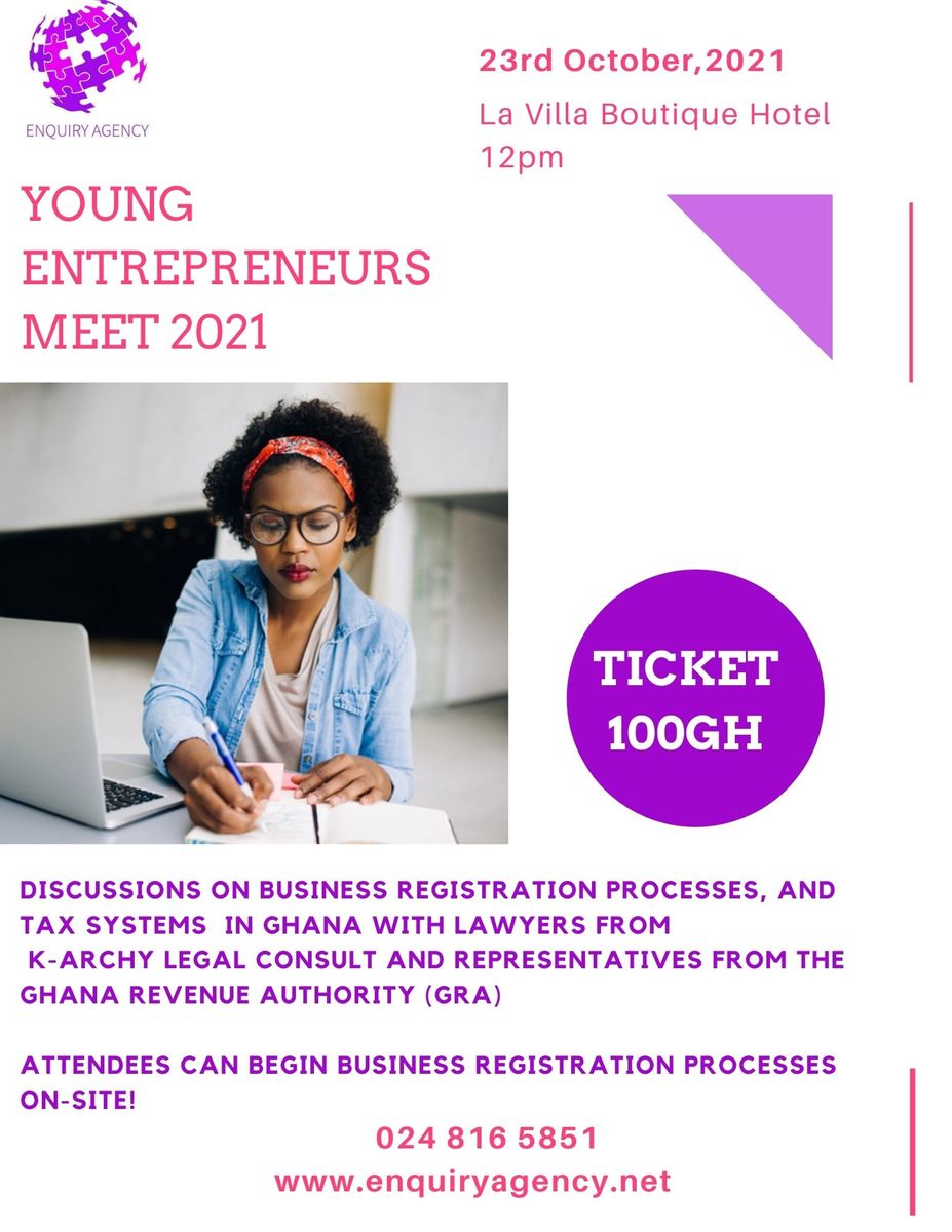 "Young Entrepreneurs Meet" (YEM2021), is a quarterly workshop organised by Enquiry Agency to assist businessmen/women, entrepreneurs, expats, business minded youths, etc, with the requisite information about business registration and tax systems in Ghana.