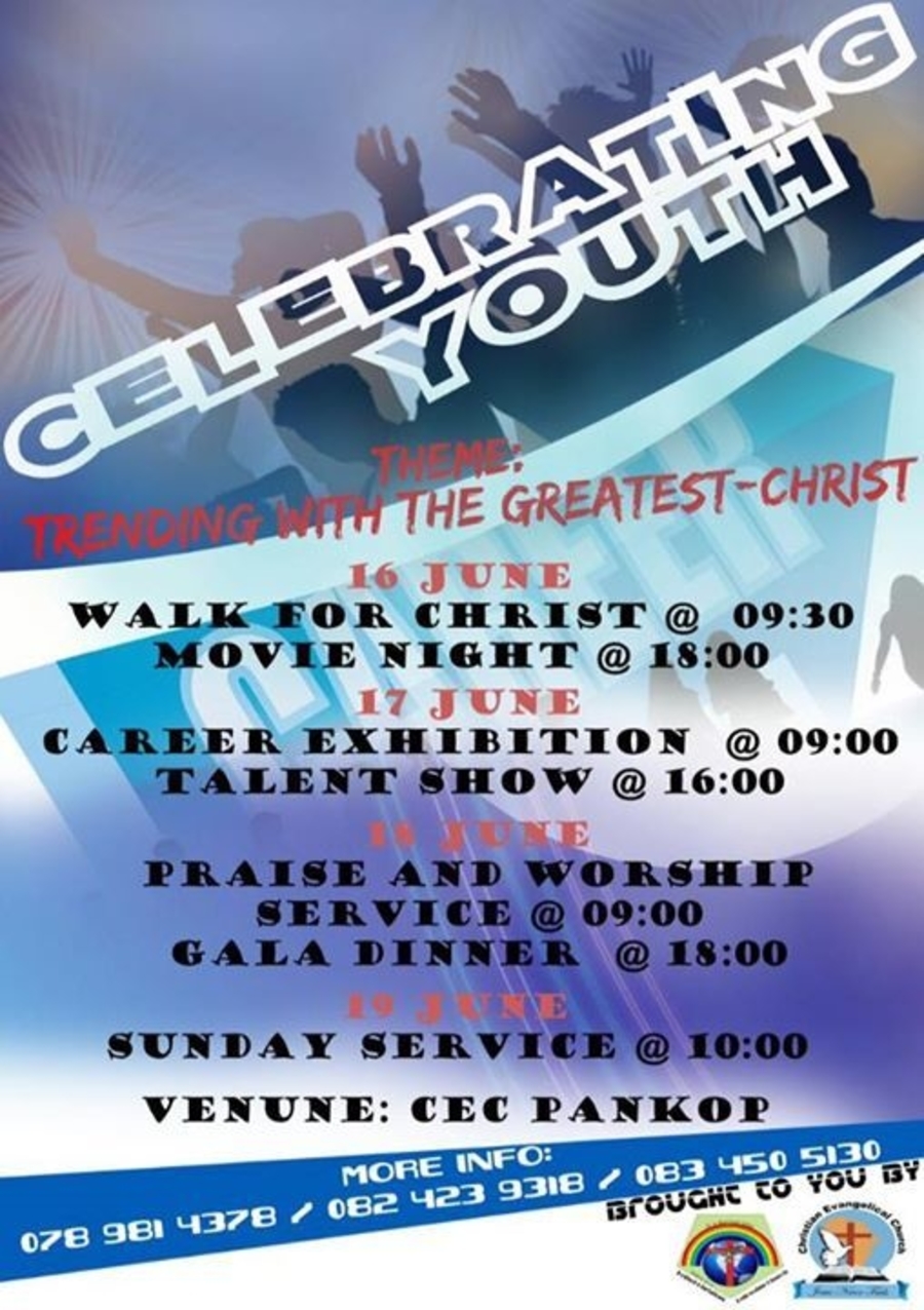 Young people coming together to seek the face of the Lord using different activities. This year the conference will last for 4 days,commencing on the 16th to the 19th of June.The other interesting thing about this years conferencing is that we are co hosting it with BCFC from Mabopane.